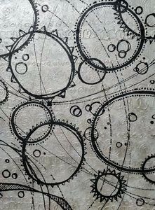 Her abstract pieces are a reflection of bursts of movements that occur in nature and everyday life. With the same bold color palettes as the landscapes, her abstracts make a bold statement with the free flowing actions often created with the use of India ink.